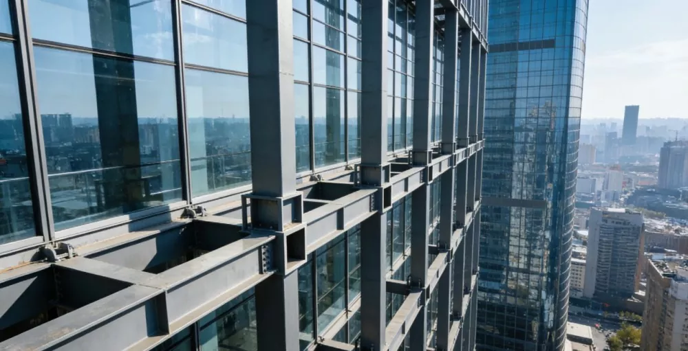 அதன் முக்கிய செயல்பாடுகளில் ஒன்று சுமை பரிமாற்றம் ஆகும், இது திரை சுவர் அடைப்பு எஃகு, காற்றின் சுமைகள் மற்றும் நில அதிர்வு சுமைகளின் சுய-எடையை தாங்கி, கட்டமைப்பு பாதுகாப்பை உறுதி செய்வதற்காக பிரதான கட்டிட அமைப்புக்கு நிலையானதாக மாற்றுகிறது. Q345 மற்றும் Q690 போன்ற அதிக வலிமை கொண்ட எஃகு பயன்படுத்தி, இது சிறந்த வளைவு மற்றும் முறுக்கு எதிர்ப்பைக் கொண்டுள்ளது, மேலும் ஹாட்-டிப் கால்வனைசிங் அல்லது ஃப்ளோரோகார்பன் பூச்சு சிகிச்சையுடன், இது ≥1000 மணிநேரங்களுக்கு உப்பு தெளிப்பைத் தாங்கும், இது நீண்ட கால வெளிப்புற பயன்பாட்டிற்கு ஏற்றதாக அமைகிறது.