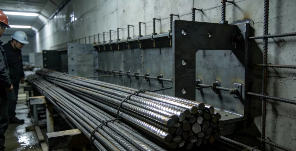 வழக்கமான வழக்கு: தியான்ஜினில் உள்ள ஒரு குறிப்பிட்ட நகரத்தில் உள்ள ஒரு அரசாங்க பைப் கேலரி திட்டம், தனிப்பயனாக்கப்பட்ட HRB500 உயர்-திறன் கொண்ட திரிக்கப்பட்ட எஃகு (விட்டம் 10 மிமீ), 190 டன் பயன்பாடு, மகசூல் வலிமை ≥ 500MPa, மற்றும் இழுவிசை வலிமை ≥ 630MPa. தனிப்பயனாக்கப்பட்ட உட்பொதிக்கப்பட்ட பலகைகளுடன் முன் பதிக்கப்பட்ட, நிலத்தடி ஈரப்பதமான நிலைமைகளுக்கு ஏற்றவாறு மேற்பரப்பு பாதுகாப்பு சிகிச்சை, குழாய் கேலரி கட்டமைப்புகளின் விரிசல் எதிர்ப்பை திறம்பட மேம்படுத்துதல், முனிசிபல் இன்ஜினியரிங் ஏற்றுக்கொள்ளலை வெற்றிகரமாக நிறைவேற்றுதல் மற்றும் நீண்ட கால பாதுகாப்பான செயல்பாட்டை உறுதி செய்தல்.