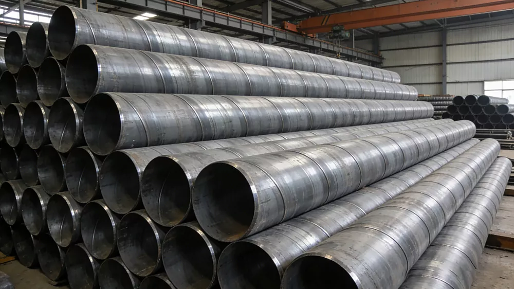 பெரிய விட்டம் சுழல் குழாய் (பெரிய துளை சுழல் வெல்டட் குழாய் என்றும் அழைக்கப்படுகிறது) என்பது ஒரு வகை சுழல் மடிப்பு எஃகு குழாய் ஆகும், இது உயர்தர சூடான-உருட்டப்பட்ட துண்டு எஃகு தாள்களில் இருந்து முக்கிய மூலப்பொருளாக தயாரிக்கப்படுகிறது. இது அறை வெப்பநிலையில் குளிர்ச்சியான வெளியேற்றத்தால் உருவாகிறது, பின்னர் ஒரு தானியங்கி இரட்டை கம்பி இரட்டை பக்க நீரில் மூழ்கிய ஆர்க் வெல்டிங் செயல்முறையைப் பயன்படுத்தி பற்றவைக்கப்படுகிறது. முக்கிய வரையறை தரநிலையானது வெளிப்புற விட்டம் ≥ 711mm ஆகும் (பெயரளவு DN700 மற்றும் அதற்கு மேற்பட்ட விட்டத்துடன் தொடர்புடையது). இது 3620 மிமீ வரையிலான வெளிப்புற விட்டம் அல்லது பொறியியல் தேவைகளுக்கு ஏற்ப பெரிய விவரக்குறிப்புகளுக்கு தனிப்பயனாக்கலாம். இது ஒரு கூட்டு வகை எஃகு தயாரிப்பு ஆகும், இது சுமை தாங்கும் மற்றும் கடத்தும் திறன்களை இணைக்கிறது. பெரிய அளவிலான திரவங்களின் (தண்ணீர், எண்ணெய், எரிவாயு, கழிவுநீர் போன்றவை) நீண்ட தூர, உயர் நிலைத்தன்மை கொண்ட போக்குவரத்தை அடைவதே இதன் முக்கிய செயல்பாடு ஆகும், மேலும் சிக்கலான வேலை நிலைமைகள் மற்றும் கடுமையான சூழல்களுக்கு ஏற்றவாறு பெரிய அளவிலான திட்டங்களுக்கு கட்டமைப்பு ஆதரவு கூறுகளாகவும் செயல்பட முடியும். அதன் தனித்துவமான சுழல் அமைப்பு வடிவமைப்புடன், இது பெரிய துளை குழாய் பொருட்களின் திறமையான உற்பத்தி மற்றும் நிலையான பயன்பாடு ஆகியவற்றில் தொழில் இடைவெளியை நிரப்புகிறது, மேலும் இது பல்வேறு உள்கட்டமைப்பு மற்றும் தொழில்துறை சூழ்நிலைகளில் பரவலாகப் பயன்படுத்தப்படுகிறது.
