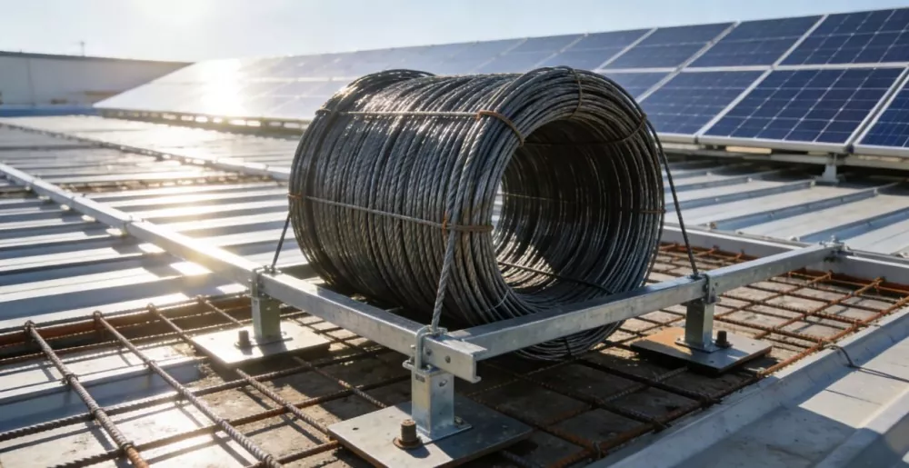வழக்கமான வழக்கு: ஷான்டாங் மாகாணத்தில் உள்ள ஒரு ஒளிமின்னழுத்த தளவாட பூங்கா திட்டமானது HRB400 ஸ்டீல் காயில் (விட்டம் 12 மிமீ) பயன்படுத்துகிறது, இது தானாக நேராக்கப்பட்டு, வெட்டப்பட்டு செயலாக்கப்பட்டு, கூரை ஒளிமின்னழுத்த அடைப்புக்குறிகளின் முன் உட்பொதிக்கப்பட்ட அடித்தள வலுவூட்டலுக்குப் பயன்படுத்தப்படுகிறது. எஃகு கம்பிகளின் மகசூல் வலிமை ≥ 400MPa, மற்றும் செயலாக்க பரிமாண துல்லியம் ≤± 5mm/10m. இது உட்பொதிக்கப்பட்ட எஃகு தகடுகள் மற்றும் உயர்-வலிமை ஆதரவுகளுடன் இணைந்து பயன்படுத்தப்படுகிறது, மொத்த எடை 280 டன்கள், அடித்தளத்தின் இழுவிசை தாங்கும் திறனை திறம்பட வலுப்படுத்துகிறது, ஒளிமின்னழுத்த அமைப்பு நிலை 12 இன் காற்று எதிர்ப்பையும், ≥ 0.7kN/m2 பனி சுமை எதிர்ப்பையும் தாங்கும் என்பதை உறுதிசெய்கிறது.