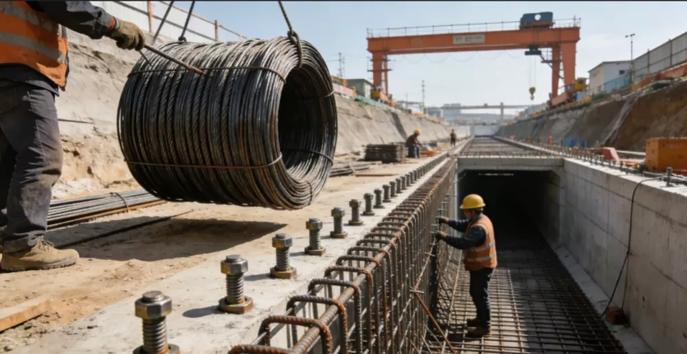 வழக்கமான வழக்கு: தியான்ஜினில் உள்ள ஒரு குறிப்பிட்ட நகரத்தில் உள்ள அரசாங்க பைப் கேலரி திட்டம், தனிப்பயனாக்கப்பட்ட HRB500 உயர் வலிமை கொண்ட ஸ்டீல் சுருள் (விட்டம் 10 மிமீ), மகசூல் வலிமை ≥ 500MPa, இழுவிசை வலிமை ≥ 630MPa, நீண்ட கால நிலத்தடி ஈரப்பதமான சூழல் தேவைகளைப் பூர்த்தி செய்கிறது. நீர்ப்புகா பேக்கேஜிங் மற்றும் போக்குவரத்திற்குப் பிறகு, 190 டன் அளவு கொண்ட முன் உட்பொதிக்கப்பட்ட போல்ட் மூலம் செயலாக்கப்பட்டு வலுவூட்டப்படுகிறது, குழாய் கேலரி கட்டமைப்பின் விரிசல் எதிர்ப்பையும் தாங்கும் திறனையும் திறம்பட மேம்படுத்துகிறது, நகராட்சி பொறியியல் ஏற்றுக்கொள்ளும் தரத்தை பூர்த்தி செய்கிறது மற்றும் குழாய் கேலரியின் பாதுகாப்பான செயல்பாட்டை உறுதி செய்கிறது.